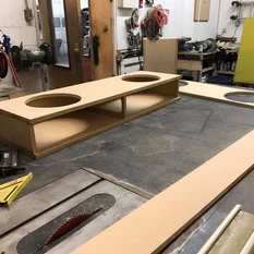 This customer at Tacoma Foss Audio and tint wanted a new custom box made behind his 3rd row to fit 2 12” woofers. Mission accomplished.